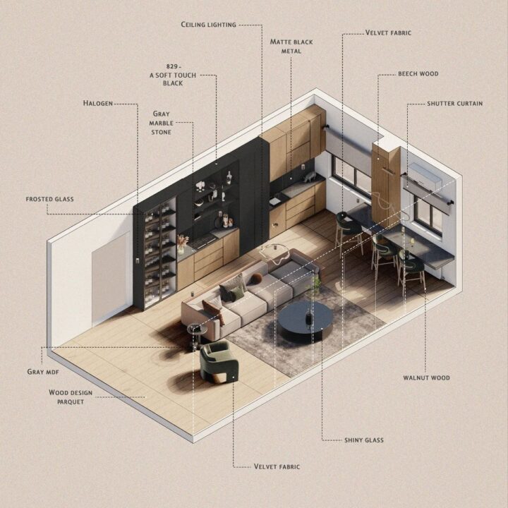 Plan functional residential and commercial interiors with practical zoning and circulation.