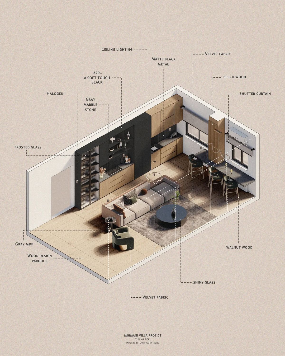 Develop design concepts through mood boards, color schemes, and material palettes aligned with client requirements.